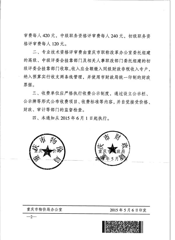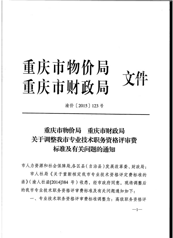 重庆市物价局 重庆市财政局 关于调整我市专业技术职务资格评审费标准及有关问题的通知