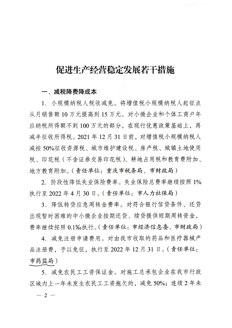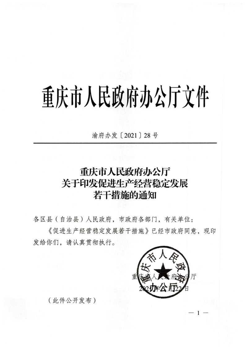 重庆市人民政府办公厅关于印发促进生产经营稳定发展若干措施的通知.pdf
