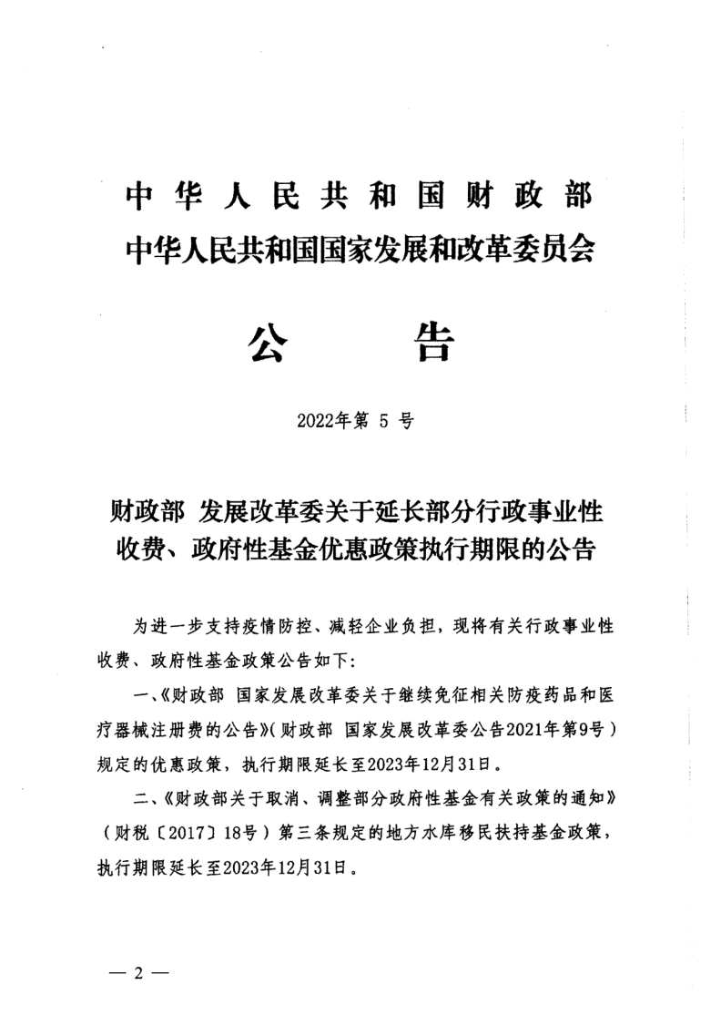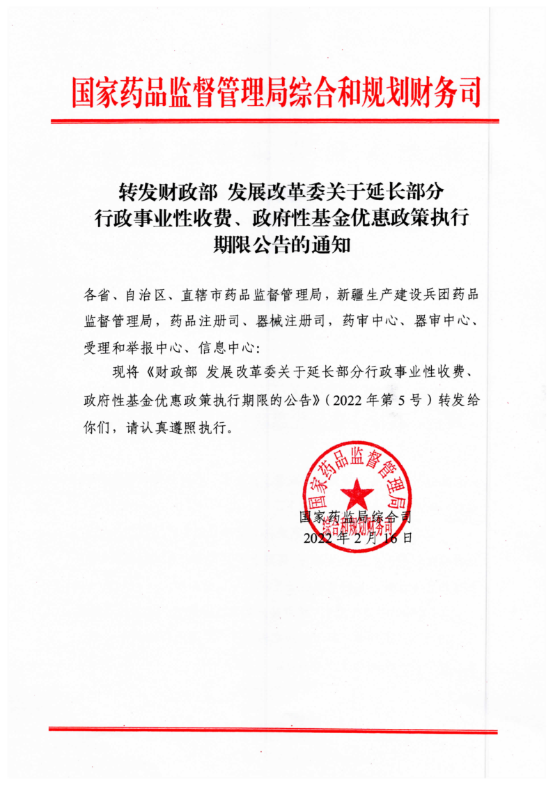财政部 发展改革委关于延长部分行政事业性收费、政府性基金优惠政策执行期限的公告
